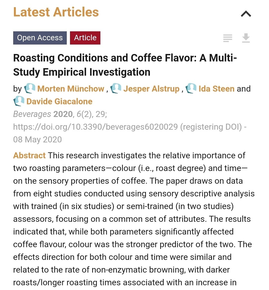 The newly published article on Roasting Conditions and Coffee Flavor reflects the process of deep contemplation over the roasting process and how the modulation of it affects flavor as pervieved by the coffee expert and consumer. We have been looking into the magnitude of significance of different aspects which is new and useful of both product development and education systems.